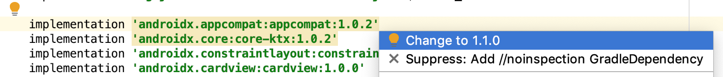 implementation 'androidx.appcompat:appcompat:1.1.0'