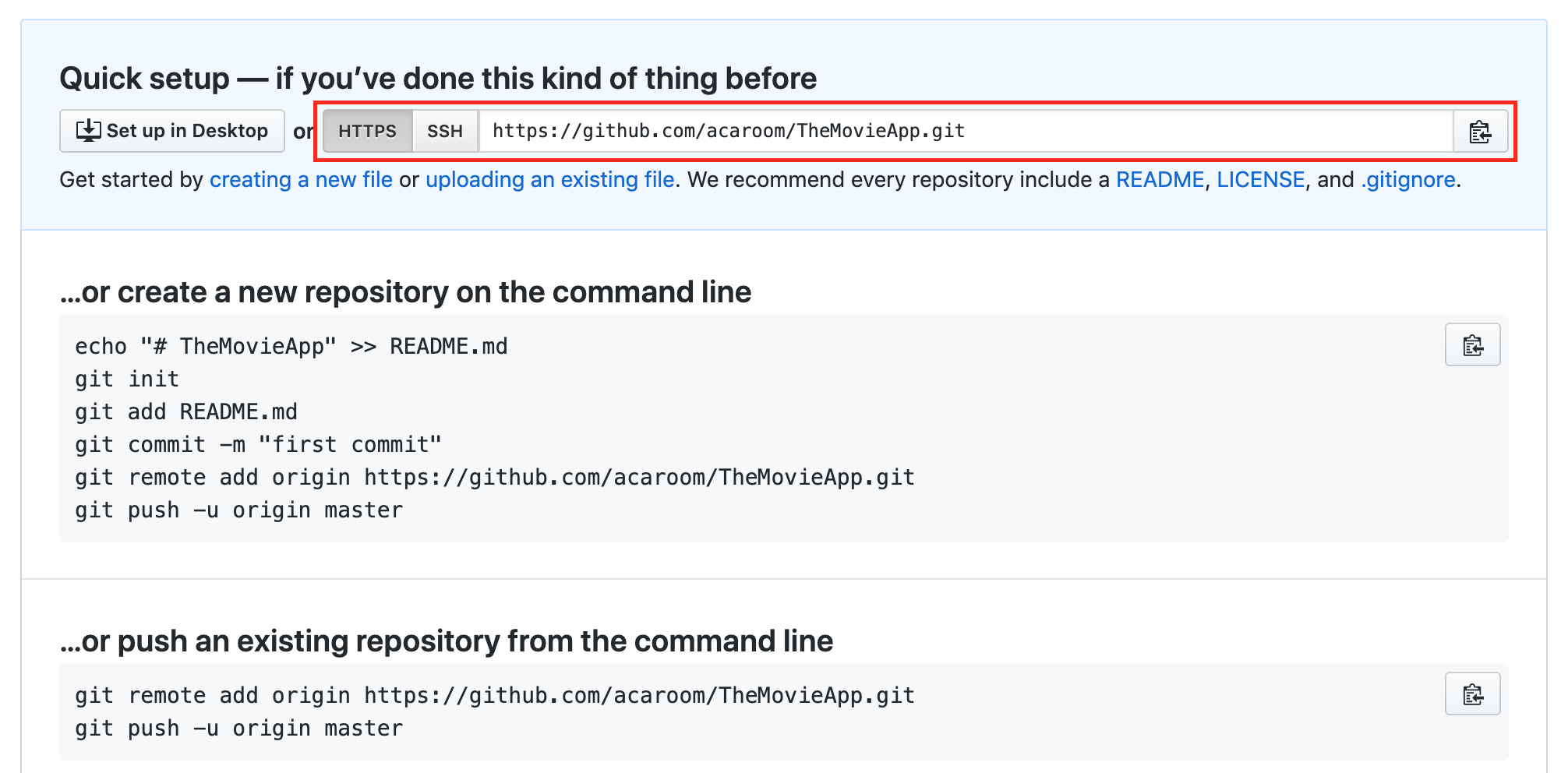 GitHub에서 새 원격 저장소를 만들게 되면 다음과 같이 URL을 얻을 수 있습니다.