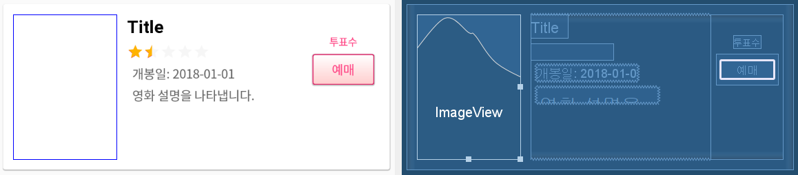 이제 item_movie.xml로 돌아와 보면 대략 다음과 같은 모양이 완성 되었습니다.