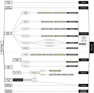 요즘 프리랜서로 일하다보니 기본적인 블로그나 제품소개 웹사이트를 만들때는 빠르게 작성할 수 있는 워드프레스로 만드는 것이 편리할 때가 많다. 드루팔은 이쁘게 만드려면 꽤나 고생해야 하지만, 워드프레스는 풍부한 테마를 자랑하고 구조가 단순해 테마를 구성하기 쉽다. 워드프레스는 테마를 구성할 때 템플릿을 통해 접근하는데 각 요청에 따라 특정한 파일을 호출한다. 만일 없으면 index.php로 도달하게 된다.