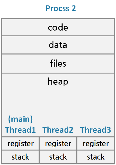 만일 개별적인 스레드를 생성하는 경우에는 스레드만의 스택만 따로 가지게 됩니다.