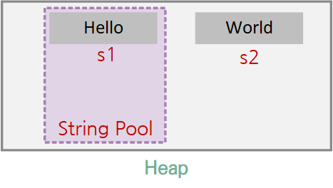 String s2 = new String("World");이것은 힙(Heap)에 생성되는 객체로 들어갑니다.