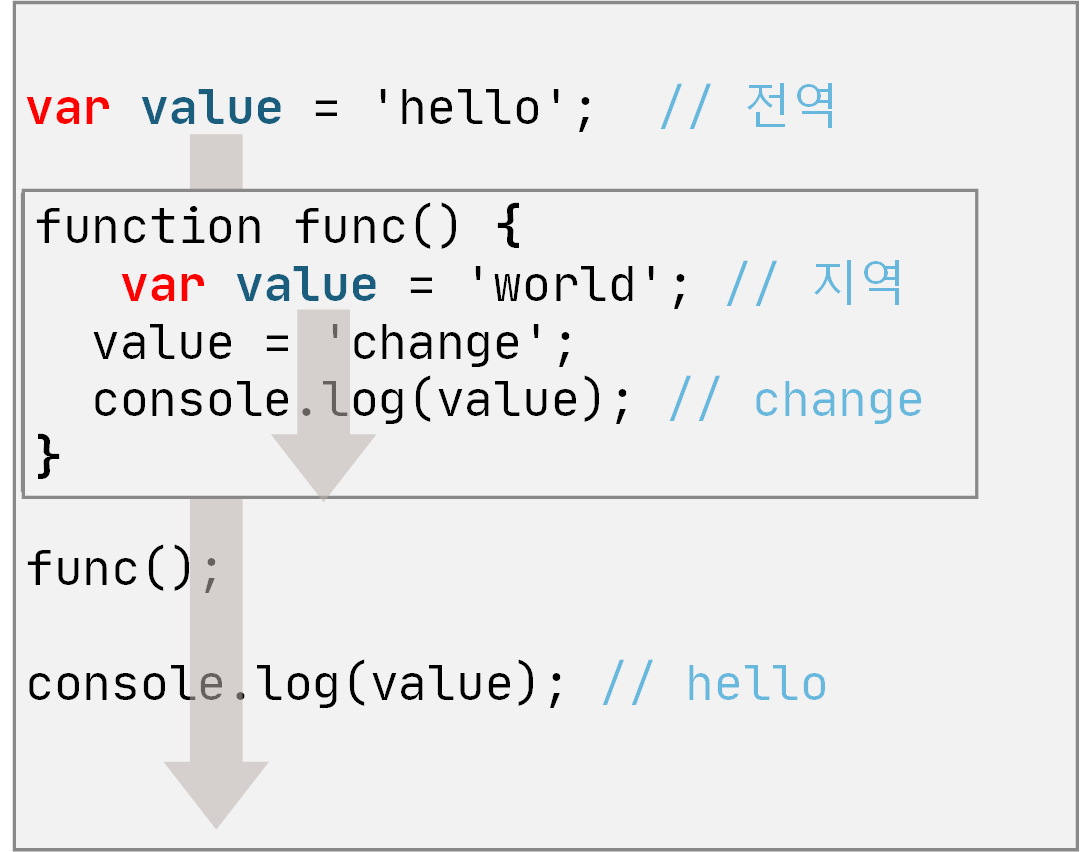 잠깐 언급했던 let과 const를 적적히 사용한다면 변수의 범위에 대해 고민할 필요가 없습니다. 다만 기존에 사용되던 var을 사용하는 경우 함수의 블럭 범위에 따라서 미치는 영향이 달라지므로 알아둘 필요가 있습니다.