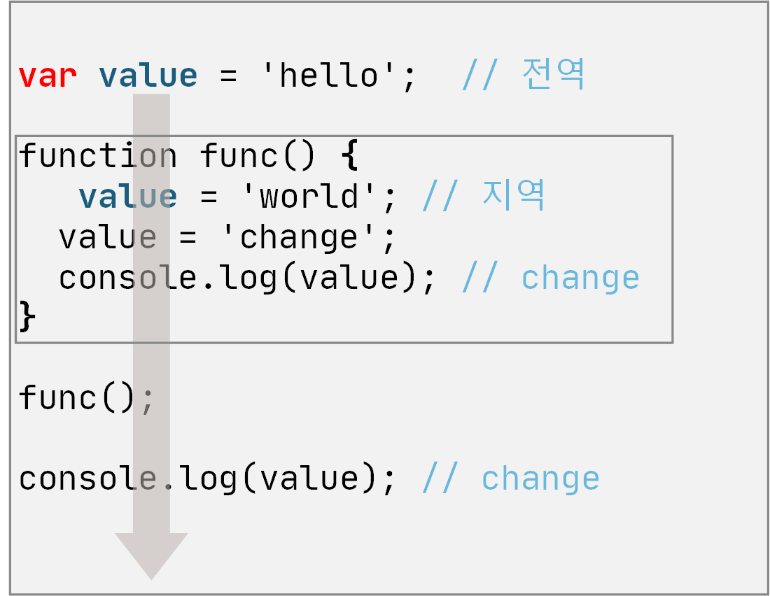 내의 value에 var 선언 키워드를 사용하지 않으면 전역에 사용된 value가 그대로 사용되 변경된 값이 남아있게 됩니다.