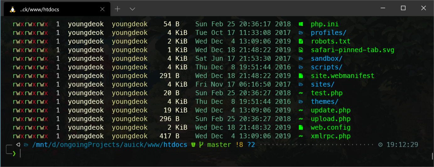 이제 터미널을 다시 시작합니다. 화려한 툴인만큼 터미널 속도를 좀 느리게 합니다. 만일 파일 리스팅의 속도를 우선시 한다면 설치하지 않는것을 권장합니다.