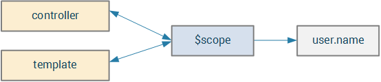템플릿에서 $scope에 user.name을 설정하면 컨트롤러에서도 user.name에 접근할 수 있다.